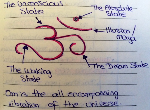 “The word Om is the Imperishable; all this its manifestation. Past, present, future – everything is Om. Whatever trascends the three divisions of time, that too is Om. There is nothing that is not Spirit. The personal self is the impersonal Spirit. It has four conditions. This Self, though beyond words, is that supreme word Om; though indivisible, it can be divided in three letters corresponding to the three conditions of the Self, the letter “A”, the letter “U”, and the letter “M”. The waking condition, called the material condition, corresponds to the letter “A”, which leads the alphabet and breathes in all the other letters. He who understands,gets all he wants; becomes a leader among men. The dreaming condition, called the mental condition, corresponds to the second letter “U”. It upholds; stands between waking and sleeping. He who understands, upholds the tradition of spiritual knowledge and looks upon everything with an impartial eye. No one ignorant of Spirit is born into his family. Undreaming sleep, called the intellectual condition, corresponds to the letter “M”. It weighs and unites. He who understands, weighs the world; rejects; unites himself with the cause. The fourth condition of the Self corresponds to Om as One, indivisible Word. He is whole; beyond bargain. The world disappears in Him. He is the good; the one without asecond. Thus Om is nothing but Self. He who understands, with the help of his personal self, merges himself into the impersonal Self; He who understands.”